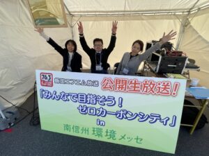 場所:南信州環境メッセ会場のエスバード外会場から公開生放送